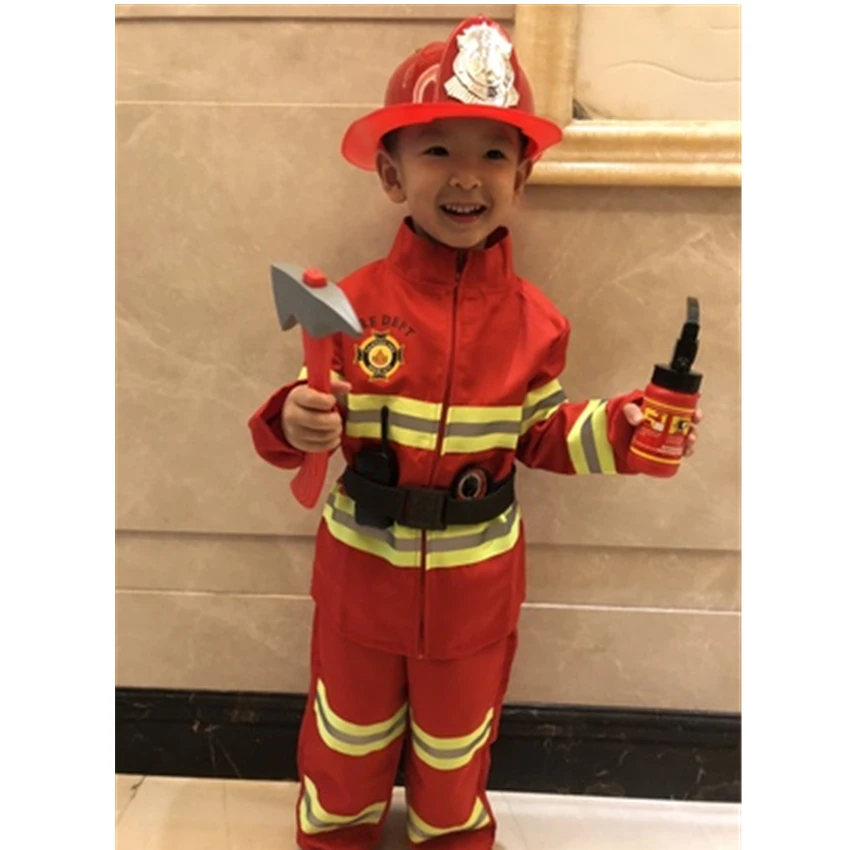 Us 13 59 15 Off Fireman Sam Cosplay Costume For Boys Carnival Halloween Girl Party Dress For Christmas Costume For Kids Hat Ax Fire Extinguisher In