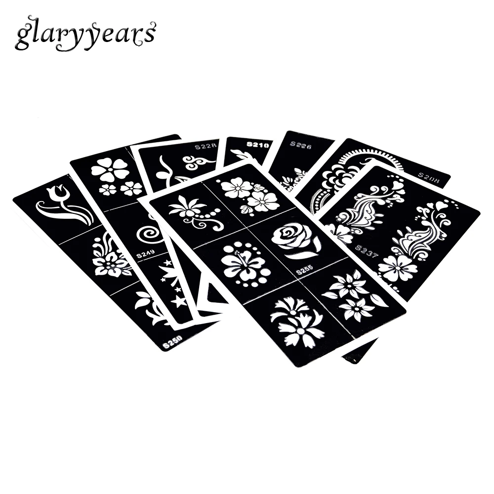 Us 5 56 8 Blatt Diy Henna Tattoo Schablone Airbrush Malerei Blume Schmetterling Muster Sexy Frauen Korperkunst Glitter Tattoo Vorlagen S200 12 In