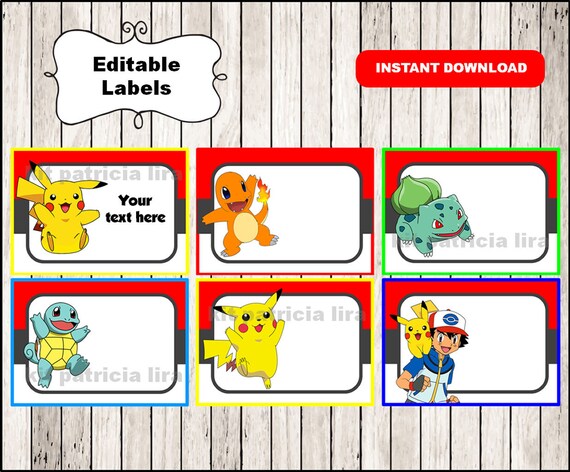 Pokemon Name Labels Pikachu Return Address Labels Labels Name Stickers Digital File