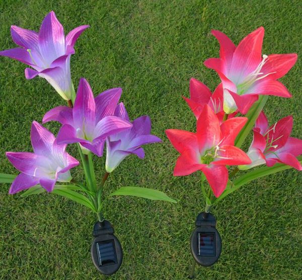 Grosshandel Solar Led Lilien Blumen Licht Farbwechsel Energiesparlampen Im Freien Garten Weg Yard Dekoration 3 Led Blumen Partei Lampe Von Qin88888