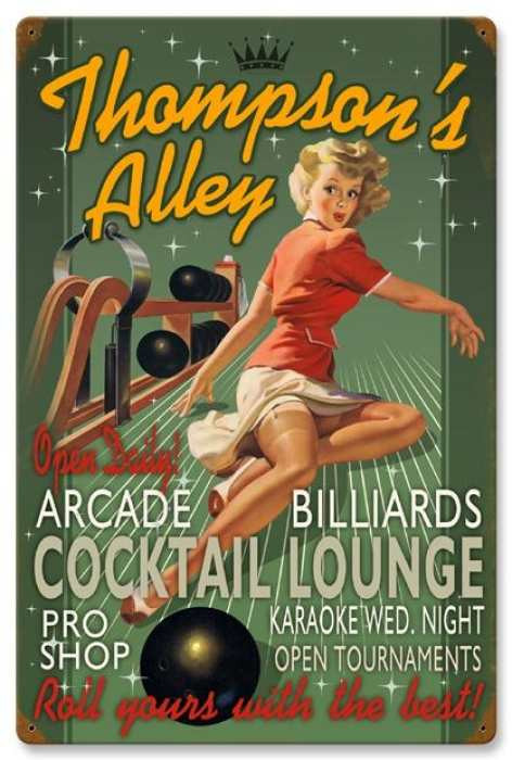 Retro Bowling Alley Pin Up Girl Metal Sign Personalized 16 X 24 Inches