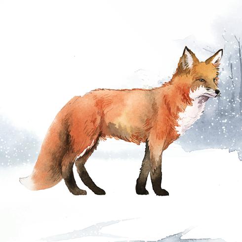 Handgezeichneter Fuchs Im Schnee Aquarell Stil Download
