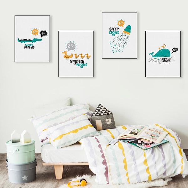 Grosshandel Kawaii Tiere Wal Ente Schlaf Zitate Poster Und Drucke Nordic Kinder Baby Bett Zimmer Wandkunst Bilder Home Decor Leinwand Malerei Von