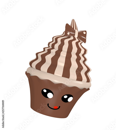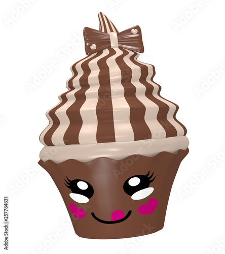 Niedlicher Nougat Cupcake Mit Schoko Schleife Und Lachendem