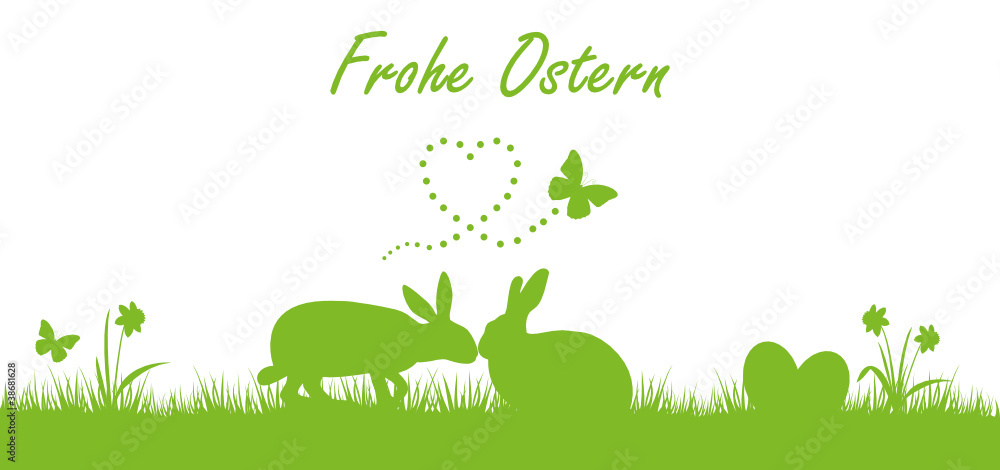 Osterkarte Herz Mit Hasen Auf Wiese Ostern Silhouette